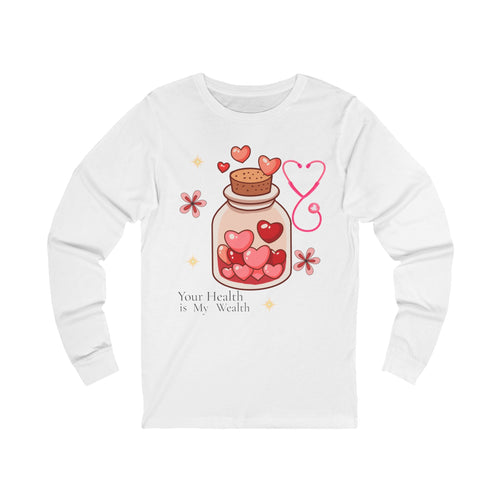 Long Sleeve Tee — Heart Jar Design "Your Health Is My Wealth"